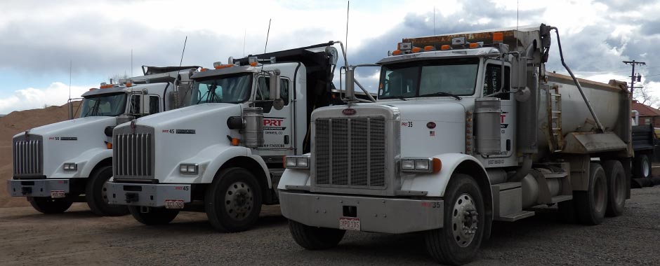 PR Trucking has been in business since March of 1998 and has been growing ever since. We haul everything from squeegee, crushed rock, debris and trash all over the state of Colorado. Currently, we own 8 tandem trucks along with 4 side dumps, lowboy trailer, 2 flatbed trailers, 2 pup trailers, and access to many trucks from sub-contractors and owner-operators, ready to help you move construction materials and equipment!